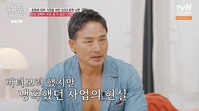 알고 보니 남편은 찜질방 사업이 망하고 바닥을 쳤을 때, 운동을 시작했다고. 당시 그는 아파트 두 채 정도의 자금인 전재산을 잃었다. 남편은 처가의 돈으로 사업에 투자를 했고, 죄스러운 마음에 극단적 선택까지 시도했다고 고백했다.