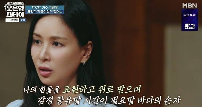 이에 고소영은 “초등학교 2학년이면 부모의 사랑만 받아야 하는 시기인데 그때부터 생계 전선에 뛰어 들었다니, 그동안 할머니를 봉양해야 한다는 책임감에 본인을 돌아보는 시간이 없었을 것 같다”며 안타까움을 표했다.