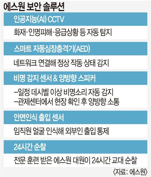지역 곳곳에 설치된 에스원의 인공지능(AI) 솔루션도 사건·사고 예방을 지원한다. 해운대구의 한 무인 슈퍼마켓에도 일반 보안 카메라가 아닌, 에스원이 자체 개발한 AI CCTV(SVMS)가 달려있었다. 이 CCTV는 단순히 영상을 녹화하는 데 그치지 않고 어떤 상황이 일어나는지를 자체적으로 판단한다. 수상한 사람이 접근하거나, 노약자가 쓰러지거나, 불꽃이 튀어 연기·화재가 발생하는지 등을 종합적으로 분석해 관제 센터에 알린다. 피서철 인명 피해가 자주 발생하는 해안가 테트라포드(방파제) 인근 등에서도 수요가 높다고 한다.