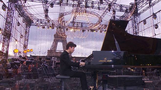 [김세현/피아니스트 : 이게 콩쿠르 우승 덕분에 이런 감사한 기회를 얻게 되어서 사실 개선문 연주 같은 경우에는 이제 쇼팽 녹턴을 연주를 하게 되어서 굉장히 저에게도 뜻깊은 자리였고요. 쇼팽 녹턴 제가 연주한 녹턴이 더 피아니스트라는 영화에 나온 유명한 곡인데 그 영화 자체가 이제 전쟁과 전쟁에서 오는 아픔 그리고 회복 이런 것에 관한 것이기 때문에 저로서도 이제 개선문이라는 그런 장소에서 이런 곡을 연주하게 된 것이 상당히 의미가 컸고요. 또 이번에 에펠탑에서 연주를 했을 때는 그 현장에 계신 분들과 시청자분들을 합쳐서 한 300만 명이 계셨다고 해요. 현장에만 몇십만 명이 계셨는데 그렇게 많은 분이 음악을 즐기러 거기로 나오셨다는 것이 저에게는 너무나 큰 감동이었고 또 연주를 하면서 이제 조금만 고개를 돌리면 에펠탑이 바로 보이기 때문에 연주하면서도 많이 영감을 받은 것 같습니다.]