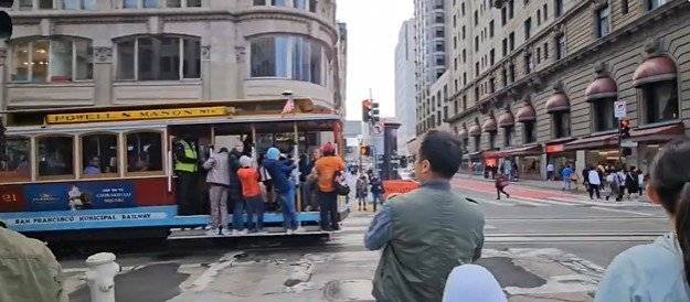 | 화염 휩싸인 그리스, 꽁꽁 싸맨 샌프란시스코 26일 온통 화염으로 뒤덮인 그리스 아테네 교외에서 한 소방관이 진화 작업을 벌이고 있다(위쪽 사진). 최근 폭염이 몰아친 그리스, 튀르키예 등에서는 곳곳에서 산불 피해가 발생하고 있다. 반면 미국 캘리포니아주 샌프란시스코에서는 올 7월 내내 15도 내외의 낮은 기온이 이어져 한여름에도 모자와 두꺼운 옷을 입고 있다. 아테네=AP 뉴시스·‘X’ 캡처 |