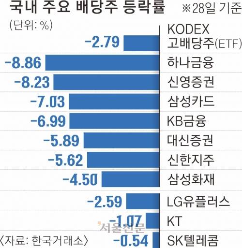 코스피 5000 멀어지나… ‘배당소득 분리과세 후퇴’에 배당주 급락
