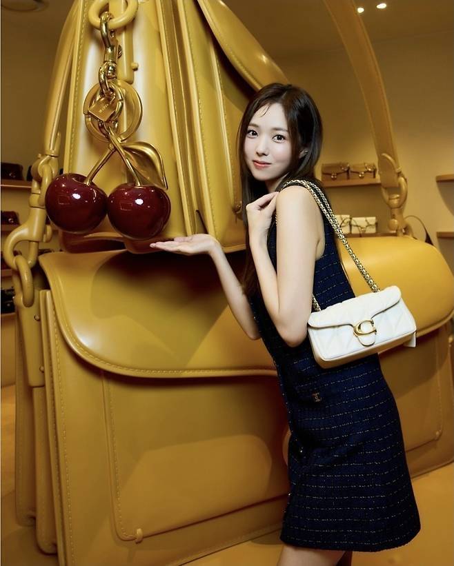 28일 채수빈은 네이비 컬러의 트위드 민소매 원피스를 착용한 패션을 공개했다.