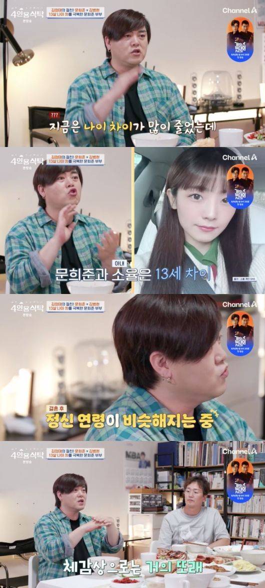 아내 소율과 13살의 나이 차이인 문희준은 "좋은 남편인지는 모르겠다. 지금은 나이 차이가 많이 줄었다. 제가 점점 만만해지는 것이다. 아내는 정신적으로 성숙해지고 저는 그대로니까 이제 한두 살 차이 나는 것 같다"라고 말했다.