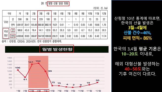 | ▲ 산림청 통계자료들에 의하면 3월과 4월에 산불 피해가 크다. 그러나 이때는 활엽수에 물이 오르는 때이다. |