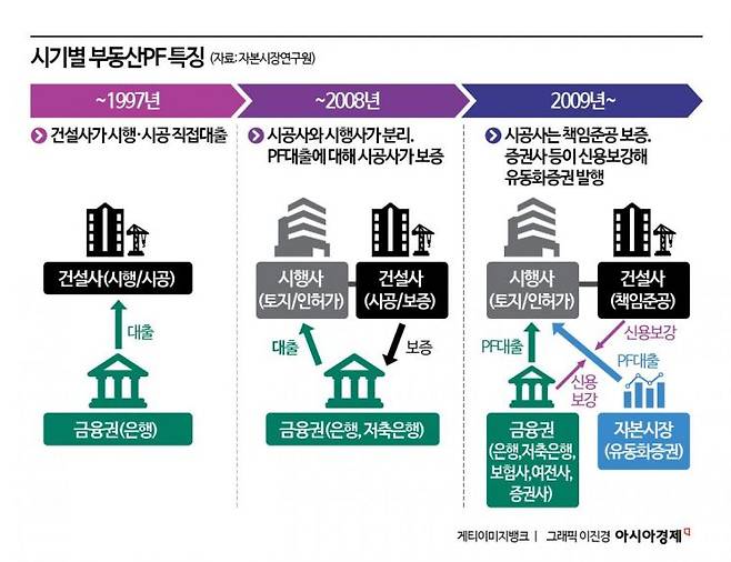 그러나 시공사에 사업의 실질적 책임이 전가된다는 점이 함정이었다. 시행사 대부분은 자본금도, 책임 능력도 부족한 '기획형 법인'이었다. 건설사업에 소요되는 막대한 PF 자금을 대출해 주기에는 열악한 업체가 대부분이었다. 금융기관은 시공사의 '지급보증'을 요구했다. 시공사는 땅을 직접 사는 것도 아닌데 시행사의 후견인 역할을 해야 했다.