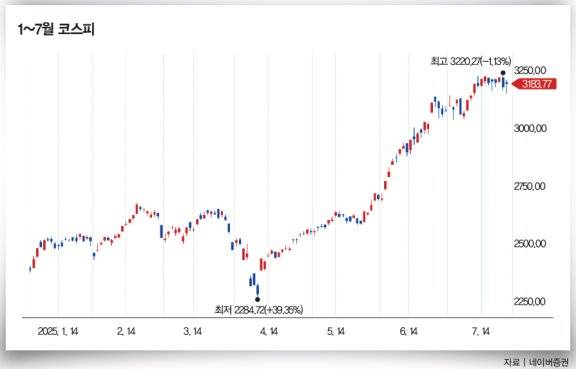상황을 종합해 하반기 코스피 밴드를 전망한다면."최소 3000 선은 유지하겠지만 3300까지 가기는 쉽지 않을 것 같다. 정부 증시 부양책만 해도 아직 변수가 많다. 배당소득을 분리과세하되 대주주 요건을 과거 수준(10억 원)으로 되돌리자는 식의 얘기가 나온다. 이렇게 되면 연말에 대주주 물량에 포함되기를 부담스러워하는 큰손들이 매도 포지션을 취할 가능성이 아주 크다. 또 외국인·기관투자자도 3000 선부터는 단기매매에 치중하는 것으로 보인다. 어제(7월 21일) 외국인이 코스피에서 9000억 원 가까운 순매수를 기록했는데, 오늘은 선물에서 7000억 원 넘는 물량을 쏟아내 코스피가 장중 3155까지 떨어졌다. 하루 사고 하루 파는 식으로 매매하고 있는 것이다. 이들이 단타가 아니라 제대로 시장에 들어와 전 고점인 3300 매물대를 뚫으려면 상당한 호재가 필요하다."