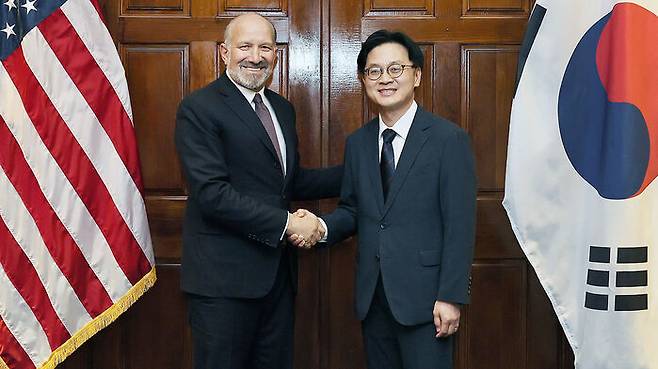 ▲ 김정관 산업통상자원부 장관과 하워드 러트닉 미국 상무부 장관