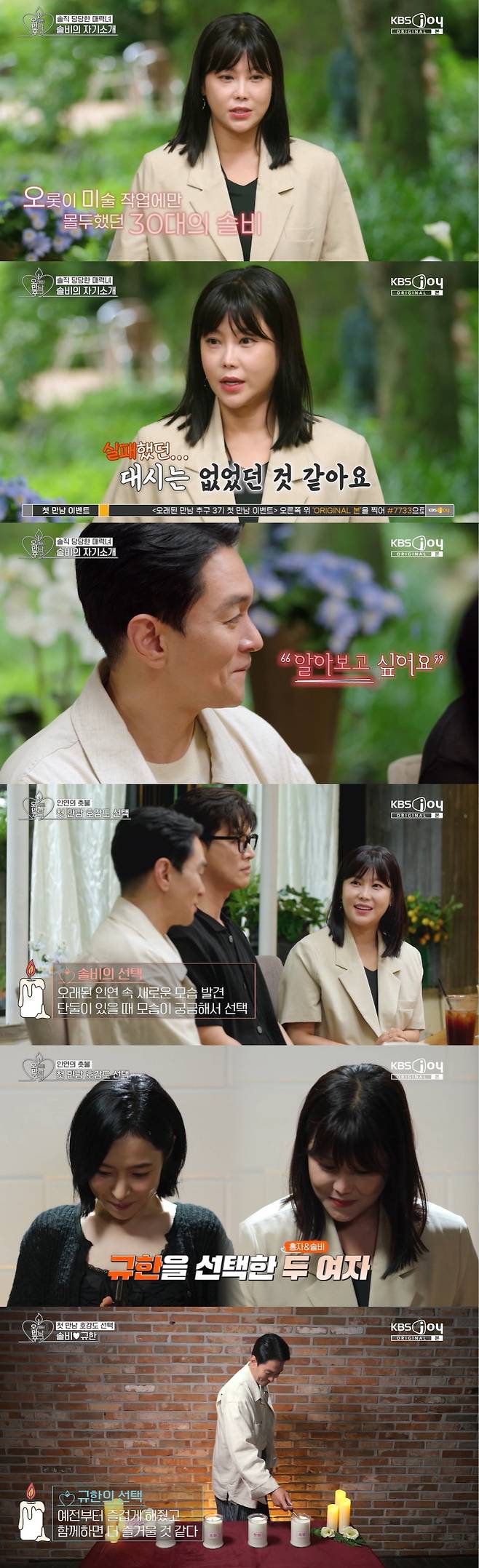 자기소개 이후 진행된 첫 만남 호감도 선택에서 솔비와 이규한은 서로를 선택해 눈길을 끌었다.