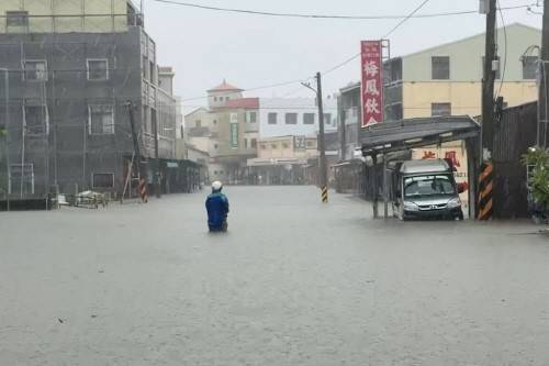 [성인 허벅지 높이까지 침수된 타이난 허우비 지역 (대만 중앙통신사 캡처=연합뉴스)]