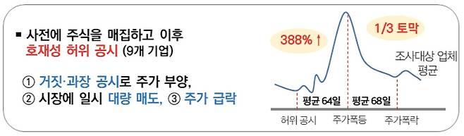 실제 국세청이 이번 조사대상 기업들의 주가를 살펴보니, 허위공시 이후 평균 64일 만에 400% 가까이 폭등했다가 폭락했고 이 과정에서 소액주주들이 큰 피해를 입은 것으로 나타났다. 반면 해당 기업의 대주주는 조합원 정보가 드러나지 않는 '투자조합'을 만들어 친인척 등을 동원해 주식을 분산 취득한 후, 매도하는 수법으로 막대한 이익을 올렸다.