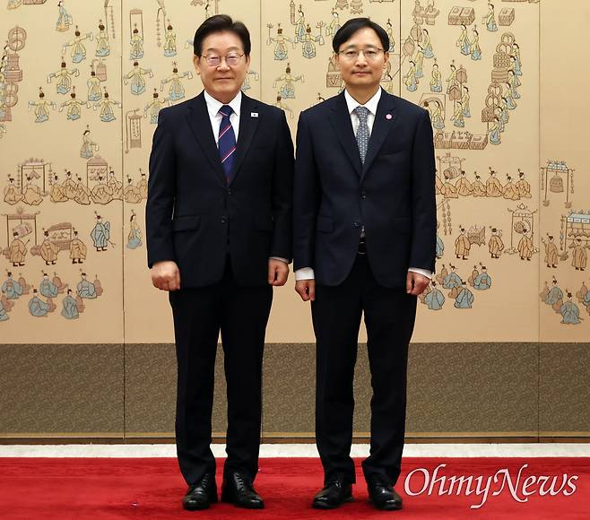 | ▲ 이재명 대통령이 28일 용산 대통령실에서 임광현 국세청장에게 임명장 수여 후 기념촬영을 하고 있다. |