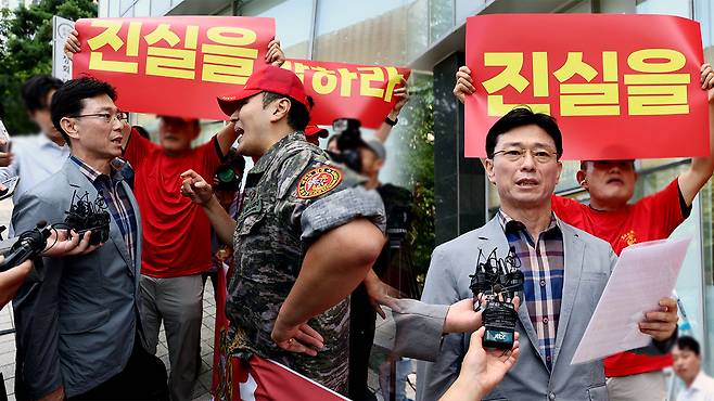 임 전 사단장은 오늘 오전 특검 사무실 앞에서 "특검이 수사를 개시한 지 4주가 지났다"며 "혐의가 인정되면 먼저 저부터 기소하고, 혐의를 뒷받침할 증거가 없다면 수사 절차에서 풀어달라"는 입장문을 발표했습니다 이 과정에서 특검을 찾은 해병대예비역연대 회원들이 임 전 사단장을 향해 큰 소리로 항의하기도 했습니다.
