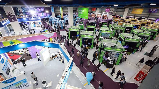 ▲ 지난 6월 26일 서울 강남구 코엑스에서 개막한 벤처·스타트업 박람회 '넥스트라이즈 2025'에서 관람객과 업체 관계자들이 부스를 살피고 있다.