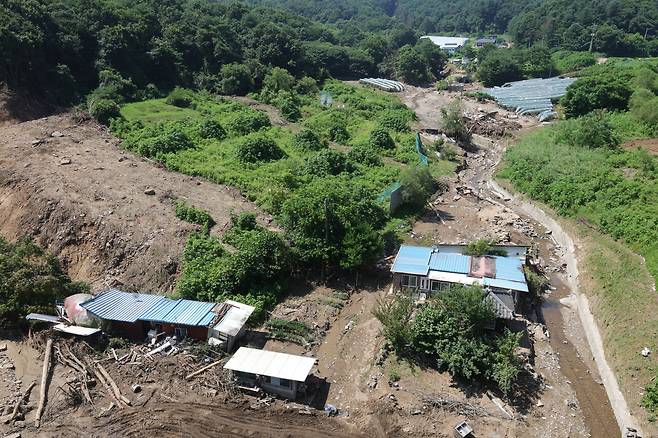 | ▲ 25일 경기도 가평군 수해 현장에서 산사태로 토사물이 쌓여 있다. |