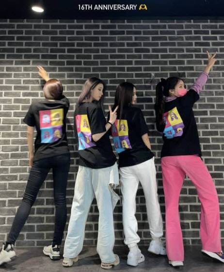 지연과 효민, 은정, 큐리는 티아라 멤버 얼굴이 박힌 티셔츠를 입고 16주년을 자축해 훈훈함을 자아냈다. 여전히 굳건한 네 멤버들의 우정이 돋보인다.