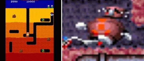 주인공인 호리 타이주가 땅을 파고 지하로 들어가서 돌아다니다가 나타나는 적들에게 작살처럼 생긴 공기 펌프를 꽂아서 터트려 죽인다는 설정, 코믹하고 재밌었습니다. 물론 실제로 생각한다면 다소 끔찍한 설정이겠지만 귀여운 그래픽으로 묘사되다 보니 즐겁고 참신한 게임이 됐던 거죠.