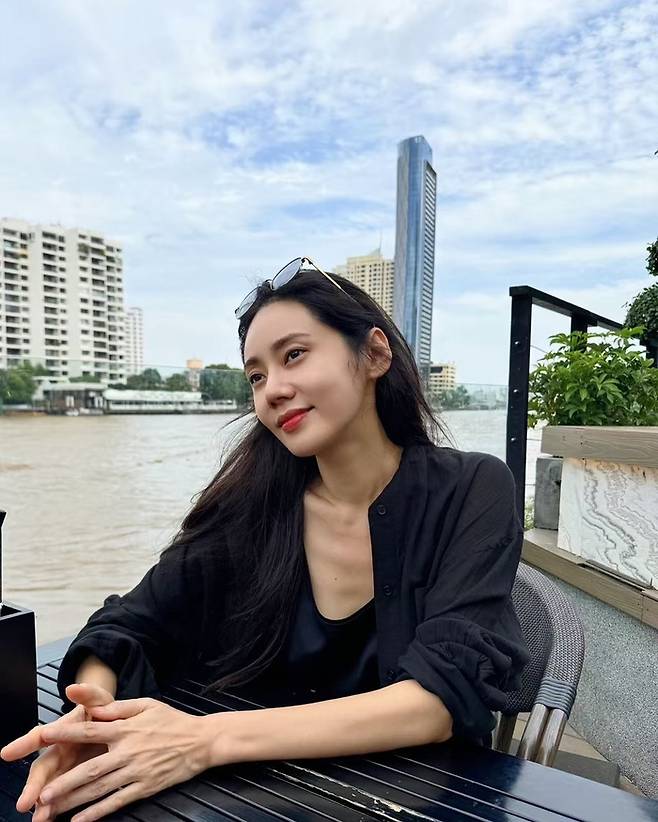 공개된 사진 속 추자현은 고요한 강가를 배경으로 블랙 셔츠와 심플한 이너를 매치해 세련된 스타일을 자랑했다.