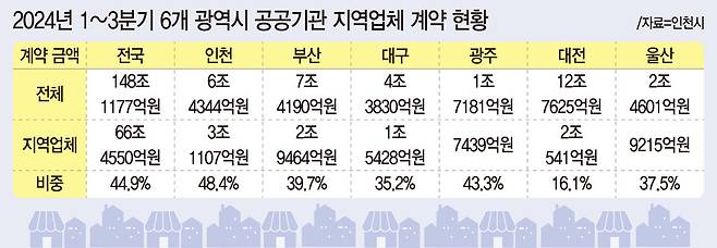 민관 협력을 바탕으로 공공기관 지역 상품 구매 비율도 높아질 것으로 기대된다. 조달청 공시 자료를 보면 지난해 인천 지역 업체 계약 비중은 50.5%로 집계됐다.