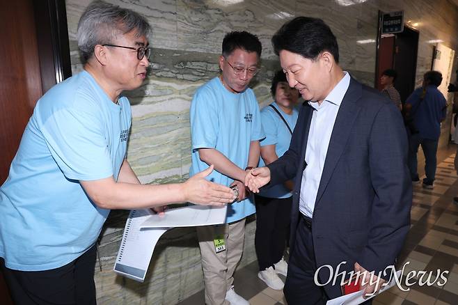 10시가 되자 청문회장으로 들어가는 의원들에게 김유진(12·29 무안공항 제주항공 여객기 참사 유가족협의회 대표)씨가 '제주항공 참사 유가족 건의문'이라고 적힌 자료집을 건네며 말했다. 반복해 말을 건넬 때마다 조심스러운 듯 두 손을 모으고 허리를 굽혔다. 한준호(더불어민주당)·권영진(국민의힘)·황운하(조국혁신당)·윤종오(진보당) 등 여야 위원들은 "고생 많으셨다", "마음을 모으겠다"라며 자료집을 받은 뒤 명함을 건넸다.