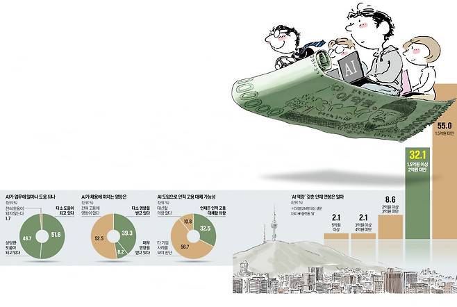 다만 아직까지는 국내 기업에서 AI 도입으로 구조조정이 본격화한 곳은 드문 것으로 파악됐다. 응답자 74.2%는 ‘지난 1년간 AI 도입에 따른 직무 변화나 인력 구조조정이 있었나’라는 항목에 “큰 변화는 없었다”고 답했다.