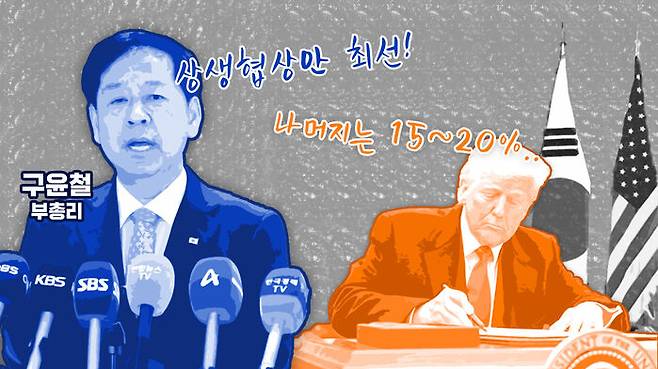 일본과 EU가 이미 15% 상호관세를 확정지은 상황에서 우리만 더 큰 부담을 지게 되는 것 아니냐는 우려가 나온 것입니다.