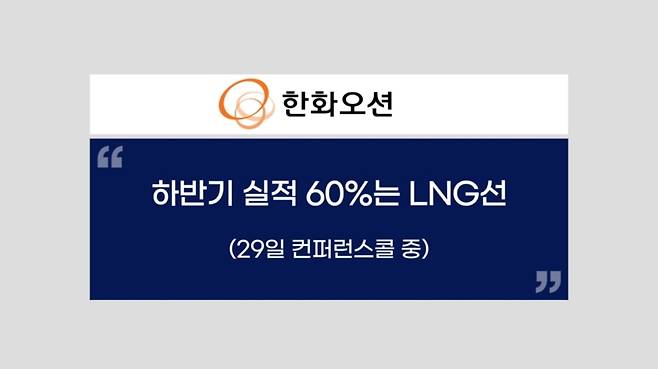 한화오션은 하반기에도 매출은 상선 가운데 LNG로, 영업익은 특수선 중 군함으로 벌겠다고 컨퍼런스 콜을 통해 전해습니다.