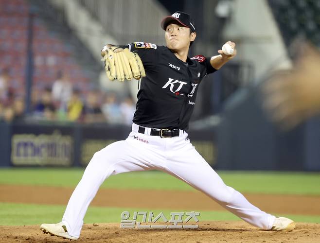 KT 투수 전용주가 5회 등판 역투하고 있다.