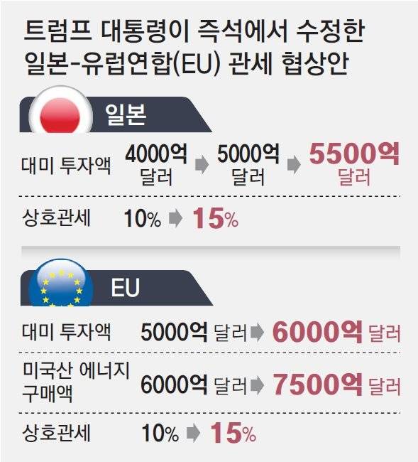 日-EU 투자안, 즉석에서 수백조 높여… ‘트럼프 계산법’ 막판 변수