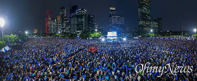 | ▲ 이재명 더불어민주당 대선후보의 마지막 유세가 6월 2일 오후 서울 영등포구 여의도문화의마당에서 열리는 동안 지지들이 운집해 있다. |