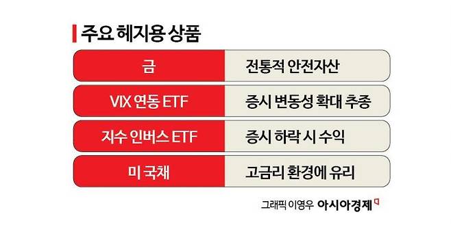 보험에 도박은 금물…"레버리지 헤지 주의해야"그 밖에도 국채형 ETF나 현금 또는 금과 같은 전통적 안전자산도 헤지용 포트폴리오가 될 수 있다. 다만 헤지 상품에서도 레버리지 효과를 노리는 것은 금물이라는 우려가 나온다. VIX지수나 지수 인버스를 두배로 추종하는 상품은 위험 회피가 아니라 또 하나의 도박이 될 수 있다는 지적이다.