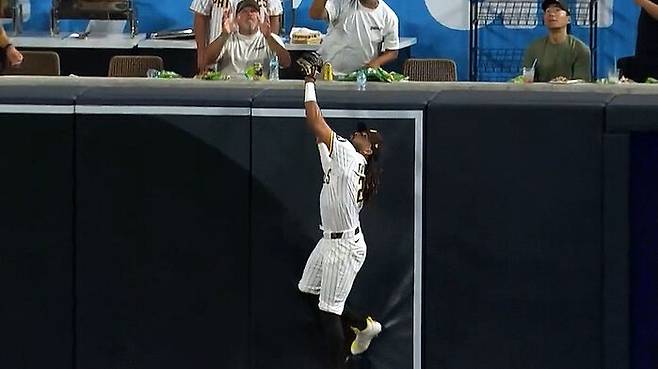 타티스, MLB서 선보인 '호수비'…담장 타고 홈런 캐치