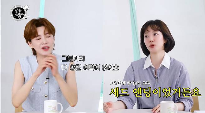'미안하다 사랑한다' 대본을 받고 "펑펑 울었다"는 임수정. 그는 "제목부터 '미인하다 사랑한다'. 너무 다르니까 '이게 뭐야?' 싶었다"라고 이야기했다. 이어 "새드 엔딩이 처음부터 기획돼 있었다. 엔딩을 첫 촬영 때 같이 찍었다. 1, 2부를 호주로 로케이션 가서 엔딩까지 같이 찍고 왔다"며 "결말을 알고 나서 찍었다. 좀 슬펐다. 그래도 저희는 그 엔딩을 모두 사랑했다. 둘이 이뤄질 순 없지만 깊이 사랑하는 사이였다는 걸 보여줄 수 있는 엔딩이어서 그 새드엔딩을 모두 사랑했다. 시청자들도 좋아해주셨다"고 추억했다.