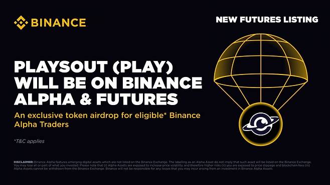 글로벌 미니게임 배포 플랫폼 플레이스아웃(PlaysOut, PLAY)은 오는 31일 글로벌 가상자산(암호화폐) 거래소 바이낸스의 알파 및 선물 시장에 동시 상장된다.