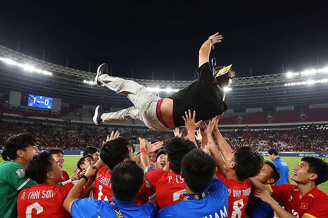 김 감독이 이끄는 베트남 U-23 대표팀은 29일(한국시간) 인도네시아 자카르타의 겔로라 붕 카르노 스타디움에서 열린 대회 결승전에서 전반 37분 터진 응우옌 꽁프엉(테꽁 비엣텔)의 선제 결승골을 앞세워 인도네시아 U-23 대표팀을 1-0으로 꺾고 무패우승을 차지했다. 2022년과 2023년에 이어 3연패이자 2005년부터 시작된 대회 역사상 최다 우승이다.