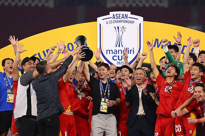 [골닷컴] 강동훈 기자 = 김상식 감독이 이끄는 베트남 23세 이하(U-23) 축구대표팀이 2025 아세안축구연맹(AFF) U-23 챔피언십(아세안챔피언십)을 우승하면서 3연패를 달성했다. 김 감독은 지난해 6월 부임 이래 두 번째 우승이다. 앞서 A대표팀을 이끌고 ‘동남아 월드컵’으로 불리는 2024 동남아시아축구선수권대회(미쓰비시일렉트릭컵)에서 우승을 차지했다.