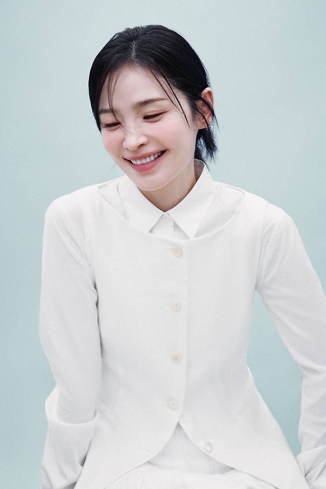 화이트 셔츠와 베스트를 매치, 환한 미소를 통해 청초하면서도 순수한 매력을 보여줬다. 또 다른 컷에서는 셔츠를 자연스럽게 풀어 담백하면서도 편안한 분위기를 담아냈다.
