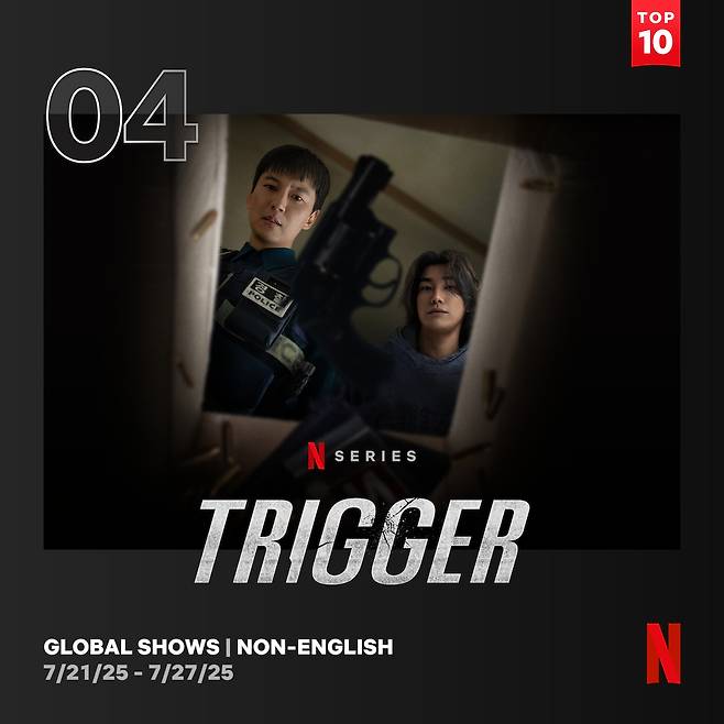 넷플릭스 시리즈 '트리거'(극본 권오승, 연출 권오승·김재훈)가 지난 25일 공개됐다. '투둠'에 따르면, 작품은 글로벌 톱 10 시리즈(비영어) 4위에 올랐다.