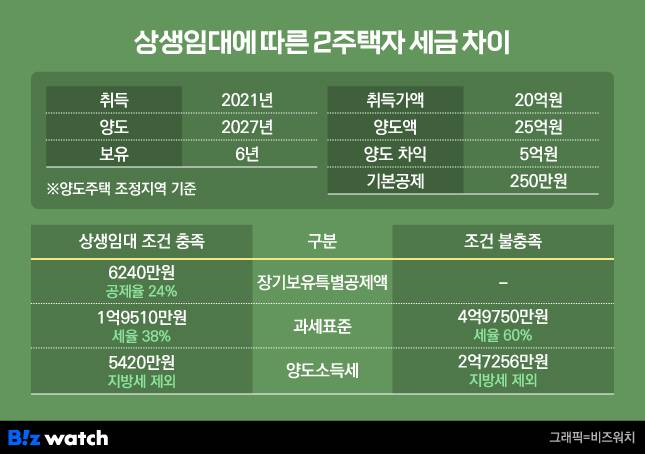 그러나 상생임대 조건에 맞춰 2025년 1월 재계약 당시 임대료 인상률을 5% 이내로 제한했다면 B씨는 1세대1주택자 비과세 혜택으로 12억원 초과분에 대한 양도세만 내면 된다. 또 장특공제 24%(보유 6년) 등을 받아 B씨가 납부할 양도세는 5420만원까지 줄어든다.