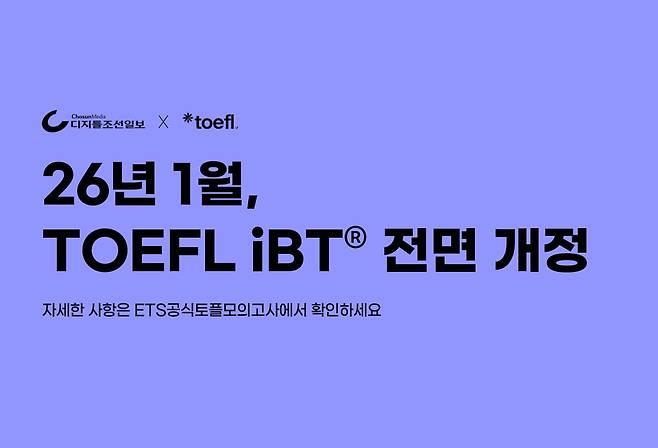 국제 공인 영어시험인 TOEFL iBT의 시행 기관인 ETS는 2026년 1월 21일부터 시험을 전면 개정하여 시행한다고 밝혔다.