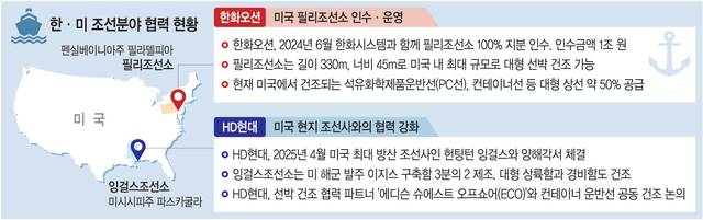 ‘한·미 조선 협력 카드’에 힘을 싣기 위해 김동관 한화그룹 부회장도 지난 28일 방미한 것으로 알려졌다. 필리조선소는 한화그룹이 지난해 1억 달러(약 1390억 원)를 투자해 지분 100%(한화오션 40%, 한화시스템 60%)를 인수한 미국 내 대형 조선소다.