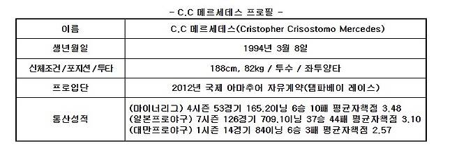 키움은 30일 한국야구위원회(KBO)에 외국인 투수 케니 로젠버그의 웨이버 공시를 요청하고, 새 외국인 투수로 C.C 메르세데스(31)를 총액 28만 달러(이적료 포함)에 영입했다고 밝혔다.