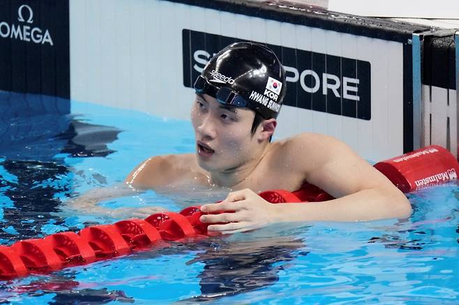 황선우는 약 16시간 만에 다시 물에 뛰어들었다. 그만큼 체력적인 부담을 안고 경기에 나서야 했다.
