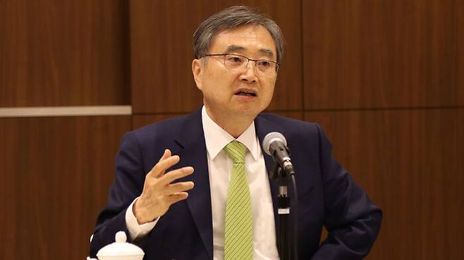 ▲ 조현 외교부 장관이 30일 도쿄 주일 한국대사관에서 열린 주일 특파원 대상 간담회에서 향후 한일관계를 미래 지향적으로 만들어 가야 한다고 강조하고 있다.