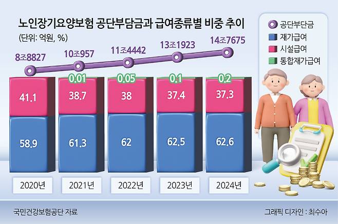 재가 돌봄 서비스에 대한 수요는 갈수록 커지고 있다. 지난해 노인장기요양보험 통계 보면 국민건강보험공단 부담 기준으로 재가급여는 62.6%, 시설급여는 37.3%를 차지하는 등 집에서의 돌봄이 대세를 이뤘다. 집에서 다양한 재가 서비스를 한 번에 맞춤형으로 받을 수 있도록 설계된 통합재가급여의 경우 같은 기간 74.2% 급증하기도 했다.