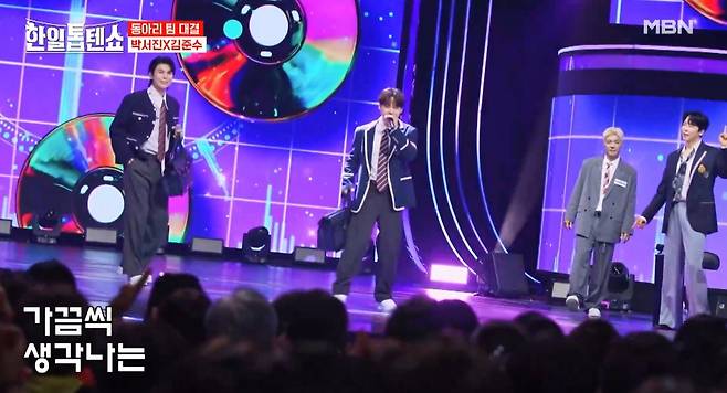대결의 하이라이트는 방송 말미에 펼쳐진 동아리 팀 전이었다. 각각 팀에서 박서진·김준수, 진해성·아키, 손태진·최수호가 무대 위에 올랐다. 박서진·김준수는 '추억 속으로'를 책가방 돌리기 댄스와 선물 투척 이벤트로 선보이며 객석의 환호를 이끌어냈다.