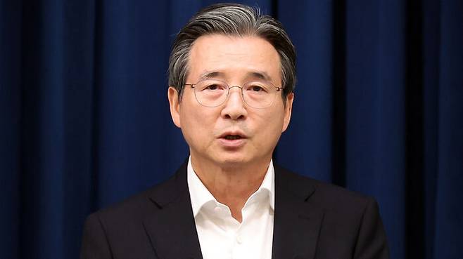 ▲ 김용범 정책실장이 30일 용산 대통령실 기자회견장에서 이재명 대통령 주재 비상경제점검 TF 회의 브리핑을 하고 있다.