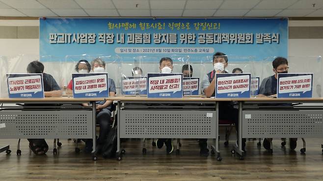 | ▲ 자료사진. 2021년 8월, 판교 IT노동자 직장 내 괴롭힘 방지 공동대책위원회 발족 기자회견. |