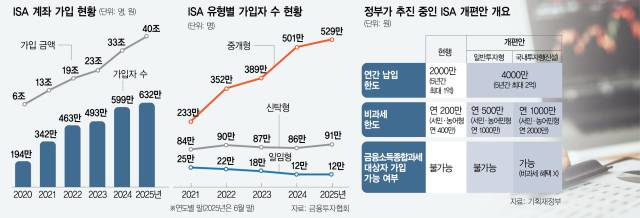 정부가 공언한 코스피 5000 달성을 위해서는 지금보다 혜택을 더 강화해야 한다는 의견이 주를 이룬다. 정부는 지난해부터 ISA 납입 한도를 연 2000만 원에서 4000만 원으로, 비과세 한도를 일반형 기준 200만 원에서 500만 원으로(서민형은 400만 원에서 1000만 원) 확대하는 방안을 추진했으나 더불어민주당의 반대로 무산됐다. 국내 주식투자 유인 확대를 위해 고소득자인 금융소득종합과세자도 가입이 가능한 국내투자형 ISA를 신설하겠다는 계획도 밝힌 바 있다. 게다가 경기 악화로 인한 세수 부족으로 추진 동력은 더 약해졌다는 평가가 나온다. 업계 관계자는 “이재명 대통령의 공약을 이행하는 데 필요한 재정을 우선 확보하는 게 중요한 정부와 여당 입장에서는 상당한 부담을 느낄 것”이라고 설명했다.