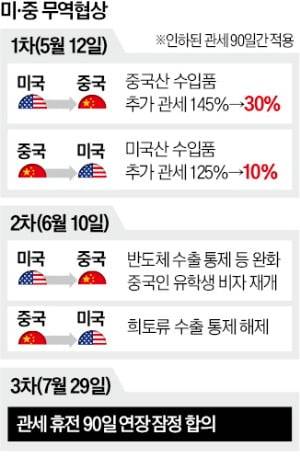 미·중은 이후 영국 런던에서 열린 2차 회담에서 미국의 반도체 등 기술 수출 통제 완화와 중국의 희토류 수출 통제 해제에 합의했다. 이어 관세 유예 만료 시점(8월 11일)을 앞두고 스톡홀름에서 3차 회담을 한 것이다.